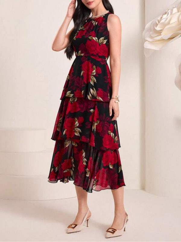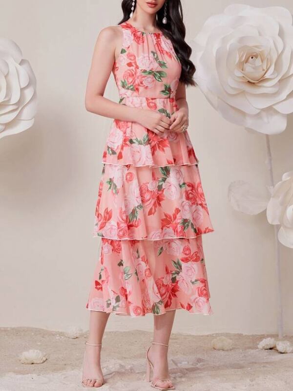 【商品管理番号】 W0072 【商品説明】 華やかな花柄が目を引くノースリーブドレス。胸元から裾にかけてティアードフリルを重ねたデザインが特徴です。軽やかな素材感と動きのあるシルエットが、立体感と華やかさを演出します。 【カラー】 レッド ピンク 【サイズ】 【M】肩幅:25cm/胸囲:88cm/着丈:126cm /ウエスト:68cm/ヒップ:95cm 【L】肩幅:26cm/胸囲:92cm/着丈:128cm/ウエスト:72cm/ヒップ:99cm 【XL】肩幅:27cm/胸囲:96cm/着丈:130cm /ウエスト:76cm/ヒップ:103cm 【2XL】肩幅:28.5cm/胸囲:102cm/着丈:132cm /ウエスト:82cm/ヒップ:109cm 【3XL】肩幅:30cm/胸囲:108cm/着丈:134cm /ウエスト:88cm/ヒップ:115cm ※サイズは測り方により2-5㎝の誤差が生じる場合がございます。 【素材】 ポリエステル100% 【ご利用可能/お支払方法】 ・クレジットカード決済 (VISA/Master/JCB/AMERICAN EXPRESS) ・キャリア決済 (docomo/au/SoftBank/Y!mobile/UQmobile) ・あと払い決済(PAYID) ▼注意事項 SHOPABOUTをご確認いただいた上でご購入ください。