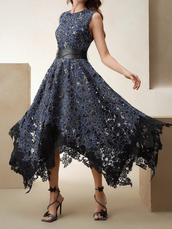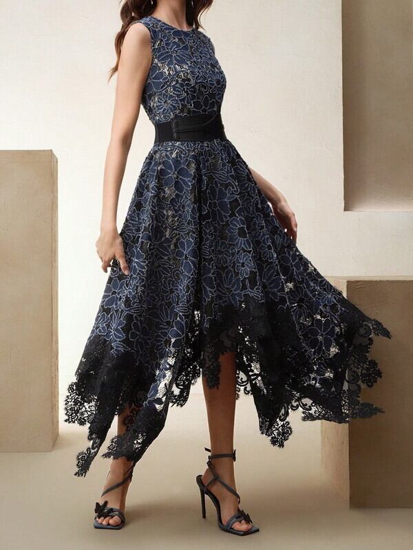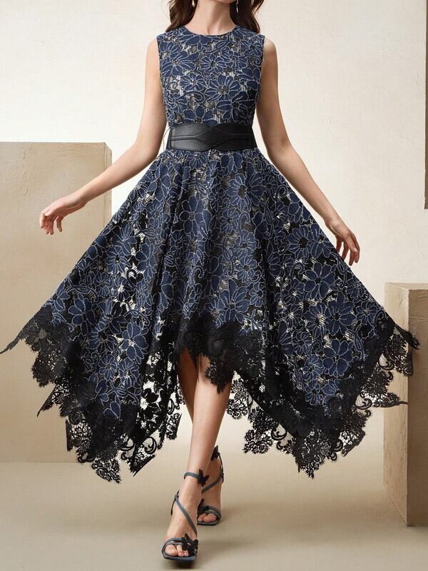 フラワーレースヘムワンピース W0008