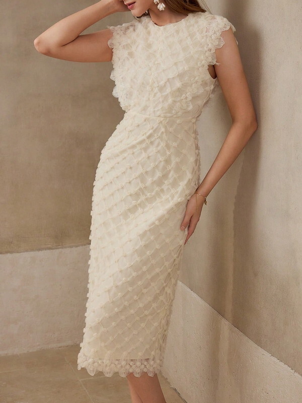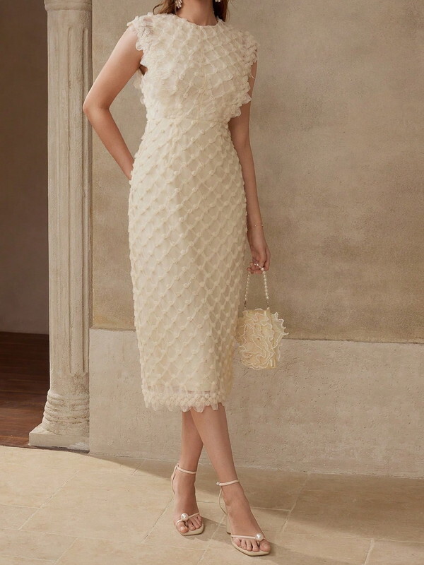 フラワーメッシュノースリーブワンピース W0009