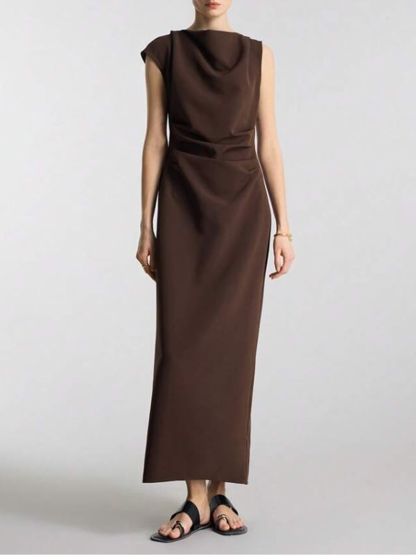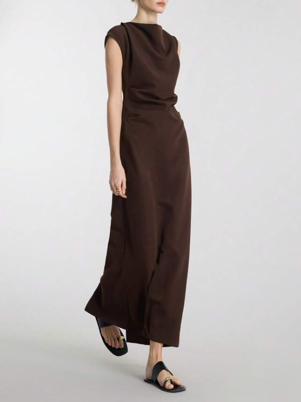 【商品管理番号】 W0083 【商品説明】 肩に沿うスリーブと胸元のゆるやかなドレープが上品な印象のロングドレスです。ウエスト部分に自然な立体感があり、体のラインをきれいに見せてくれます。すとんと落ちるシルエットで、シンプルながら存在感のある一着です。特別な場面にも日常のきれいめスタイルにも合わせやすいデザインです。 【カラー】 ネイビーブルー ブラック ブラウン バーガンディ 【サイズ】 【M】胸囲:88cm/着丈:133/140cm/ウエスト:70cm/ヒップ:95.5cm 【L】胸囲:92cm/着丈:134/141cm/ウエスト:74cm /ヒップ:99.5cm 【XL】胸囲:96cm/着丈:135/142cm/ウエスト:78cm /ヒップ:103.5cm 【2XL】胸囲:102cm/着丈:136/143cm/ウエスト:84cm /ヒップ:109.5cm ※サイズは測り方により2-5㎝の誤差が生じる場合がございます。 【素材】 ポリエステル92%/ポリウレタン8% 【ご利用可能/お支払方法】 ・クレジットカード決済 (VISA/Master/JCB/AMERICAN EXPRESS) ・キャリア決済 (docomo/au/SoftBank/Y!mobile/UQmobile) ・あと払い決済(PAYID) ▼注意事項 SHOPABOUTをご確認いただいた上でご購入ください。