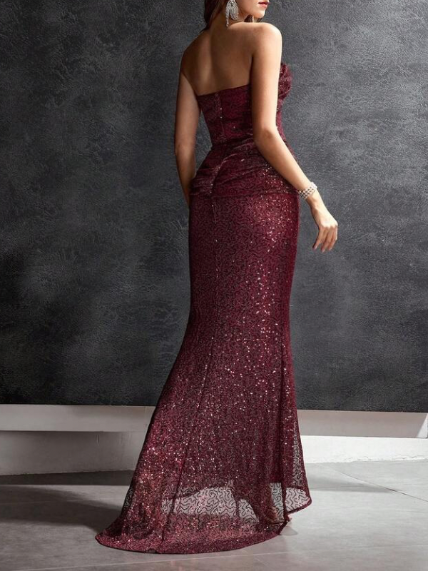 【商品管理番号】 W0088 【商品説明】 全体にあしらわれた細かなスパンコールが艶めく、華やかで存在感のあるドレス。胸元のツイストデザインが立体感を生み、ウエストのドレープがラインを美しく整えます。すらりと伸びるマーメイドシルエットが脚を長く見せ、バーガンディの深い色味が上品さを引き立てます。夜のパーティーやラグジュアリーな会場でひときわ輝く一着です。 【カラー】 バーガンディ 【サイズ】 【M】胸囲:78cm/着丈:142.2/148.6cm/ウエスト:63cm/ヒップ:85cm 【L】胸囲:82cm/着丈:143.2/149cm/ウエスト:67cm /ヒップ:89cm 【XL】胸囲:86cm/着丈:144.2/149.4cm/ウエスト:71cm /ヒップ:93cm 【2XL】胸囲:92cm/着丈:145.2/149.7cm/ウエスト:77cm /ヒップ:99cm ※サイズは測り方により2-5㎝の誤差が生じる場合がございます。 【素材】 ポリエステル95%/ポリウレタン5% 【ご利用可能/お支払方法】 ・クレジットカード決済 (VISA/Master/JCB/AMERICAN EXPRESS) ・キャリア決済 (docomo/au/SoftBank/Y!mobile/UQmobile) ・あと払い決済(PAYID) ▼注意事項 SHOPABOUTをご確認いただいた上でご購入ください。