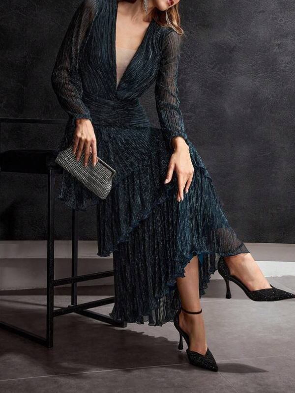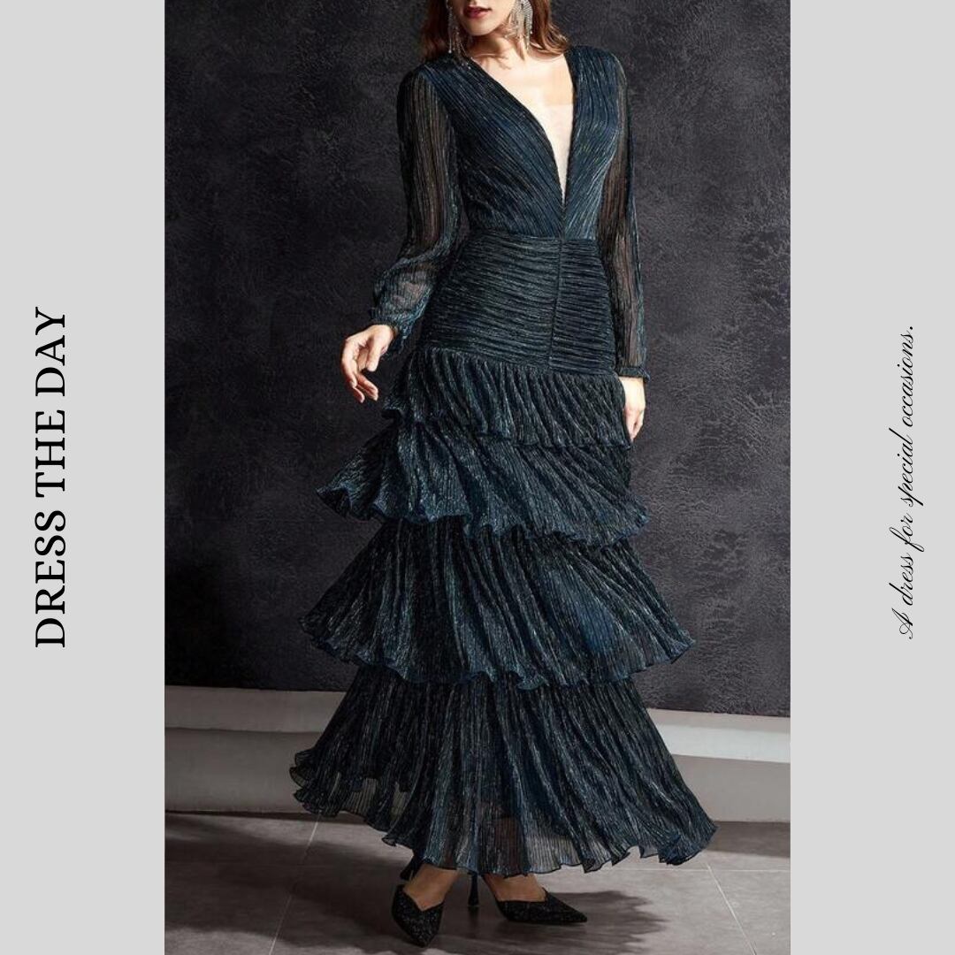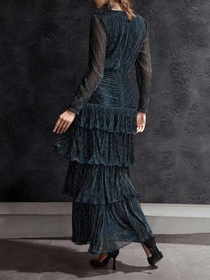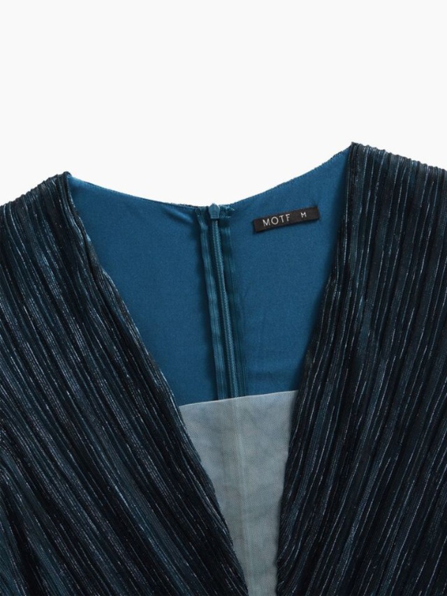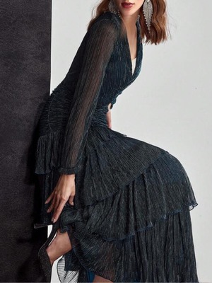 【商品管理番号】 W0094 【商品説明】 プリーツを施したティアードデザインが、歩くたびにしなやかな揺れを生み出します。深めのVネックと透け感のあるスリーブが、上品で大人らしい印象を添えます。華やかなシーンを美しく見せてくれるエレガントな一着です。 【カラー】 ティールブルー 【サイズ】 【M】肩幅:37cm/胸囲:81cm/着丈:135.5/133cm/袖丈:55.5cm/ウエスト:64cm/ヒップ:85cm/カフ:17cm 【L】肩幅:38cm/胸囲:85cm/着丈:136.5/134cm /袖丈:56.5cm/ウエスト:68cm /ヒップ:89cm /カフ:18cm 【XL】肩幅:39cm/胸囲:89cm/着丈:137.5/135cm /袖丈:57.5cm /ウエスト:72cm /ヒップ:93cm /カフ:19cm 【2XL】肩幅:40cm/胸囲:95cm/着丈:138.5/136cm /袖丈:58.5cm /ウエスト:78cm /ヒップ:99cm /カフ:20cm ※サイズは測り方により2-5㎝の誤差が生じる場合がございます。 【素材】 金属繊維糸56%/ポリエステル44% 【ご利用可能/お支払方法】 ・クレジットカード決済 (VISA/Master/JCB/AMERICAN EXPRESS) ・キャリア決済 (docomo/au/SoftBank/Y!mobile/UQmobile) ・あと払い決済(PAYID) ▼注意事項 SHOPABOUTをご確認いただいた上でご購入ください。
