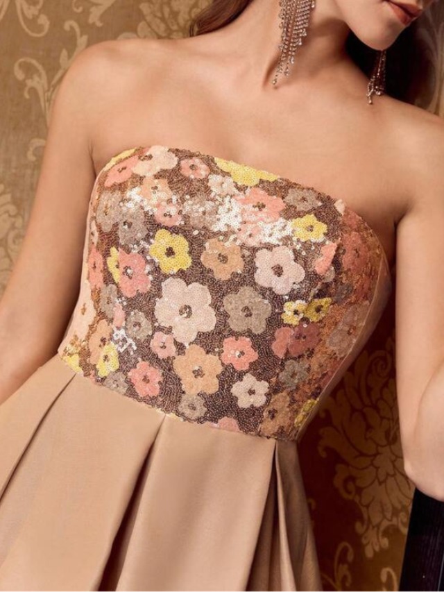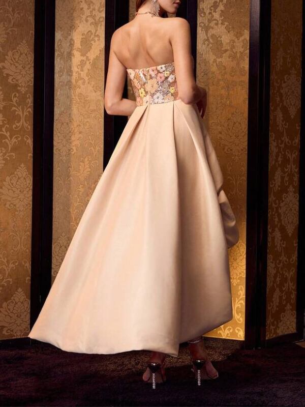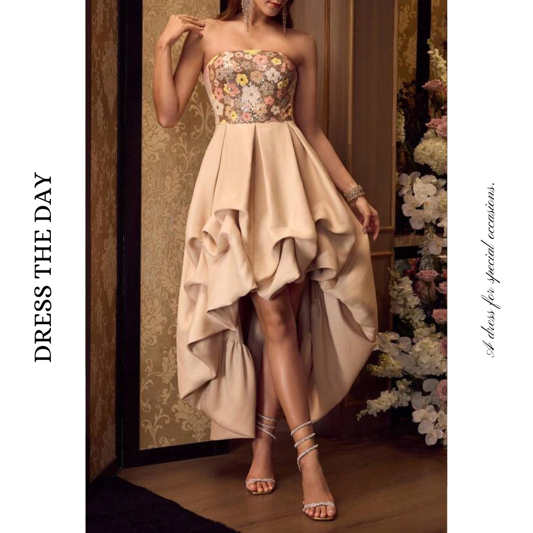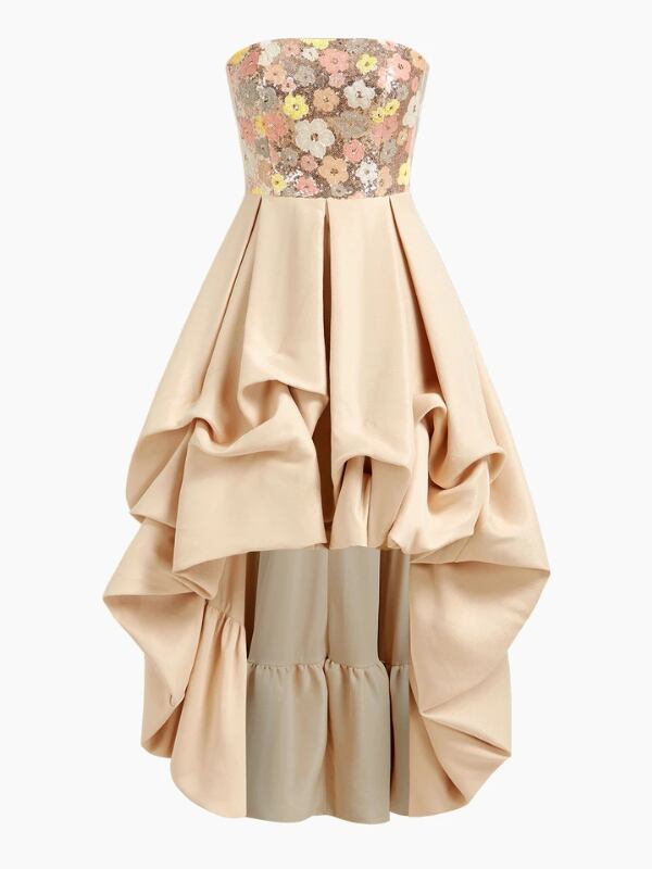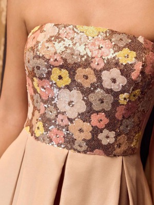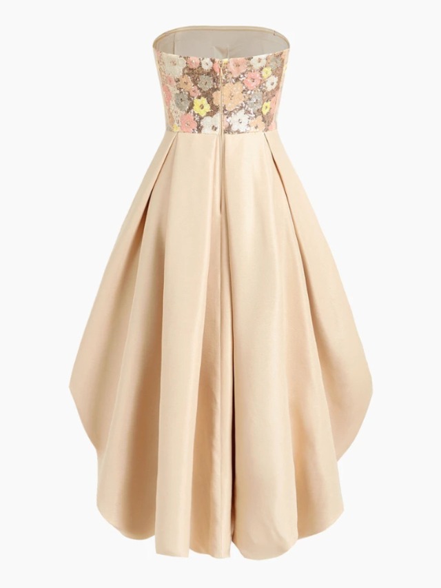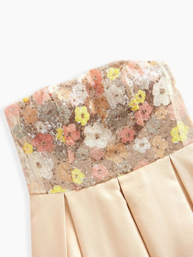【商品管理番号】 W0098 【商品説明】 花柄スパンコールのビスチェが華やかさを添える、動きのあるラッフルシルエットが魅力のドレス。前後差のあるヘムラインが足元を美しく見せ、軽やかな表情を演出します。ウエストまわりはすっきり見える設計で、スタイルアップ効果も抜群です。特別なシーンに映える一着です。 【カラー】 ベージュ 【サイズ】 【M】胸囲:78cm/着丈:85/113.6cm/ウエスト:68cm 【L】胸囲:82cm/着丈:87/115cm/ウエスト:72cm 【XL】胸囲:86cm/着丈:89/116.4cm/ウエスト:76cm 【2XL】胸囲:92cm/着丈:91/117.7cm/ウエスト:82cm ※サイズは測り方により2-5㎝の誤差が生じる場合がございます。 【素材】 ポリエステル64%/レーヨン36% 【ご利用可能/お支払方法】 ・クレジットカード決済 (VISA/Master/JCB/AMERICAN EXPRESS) ・キャリア決済 (docomo/au/SoftBank/Y!mobile/UQmobile) ・あと払い決済(PAYID) ▼注意事項 SHOPABOUTをご確認いただいた上でご購入ください。