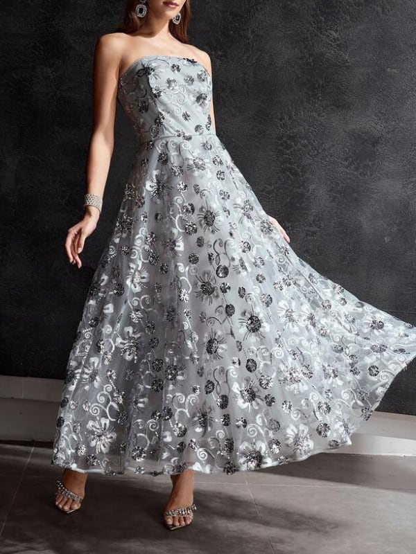 【商品管理番号】 W0100 【商品説明】 立体的なフローラルスパンコールが華やかに輝く、存在感のあるドレス。チュールを重ねた軽やかなシルエットが歩くたびに揺れ、エレガントな雰囲気を演出します。ストラップレスのすっきりとした胸元がデコルテを美しく見せ、ウエスト位置も高めでスタイルアップ効果があります。パーティーや特別なシーンにふさわしい一着です。 【カラー】 グレー 【サイズ】 【M】胸囲:78cm/着丈:129/105.6cm/ウエスト:66cm/ヒップ:114.8cm 【L】胸囲:82cm/着丈:130/106cm/ウエスト:70cm/ヒップ:122cm 【XL】胸囲:86cm/着丈:131/106.4cm/ウエスト:74cm/ヒップ:129.2cm 【2XL】胸囲:92cm/着丈:132/106.7cm/ウエスト:80cm/ヒップ:139.9cm ※サイズは測り方により2-5㎝の誤差が生じる場合がございます。 【素材】 ポリアミド100% 【ご利用可能/お支払方法】 ・クレジットカード決済 (VISA/Master/JCB/AMERICAN EXPRESS) ・キャリア決済 (docomo/au/SoftBank/Y!mobile/UQmobile) ・あと払い決済(PAYID) ▼注意事項 SHOPABOUTをご確認いただいた上でご購入ください。