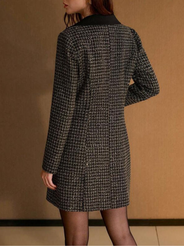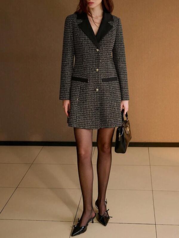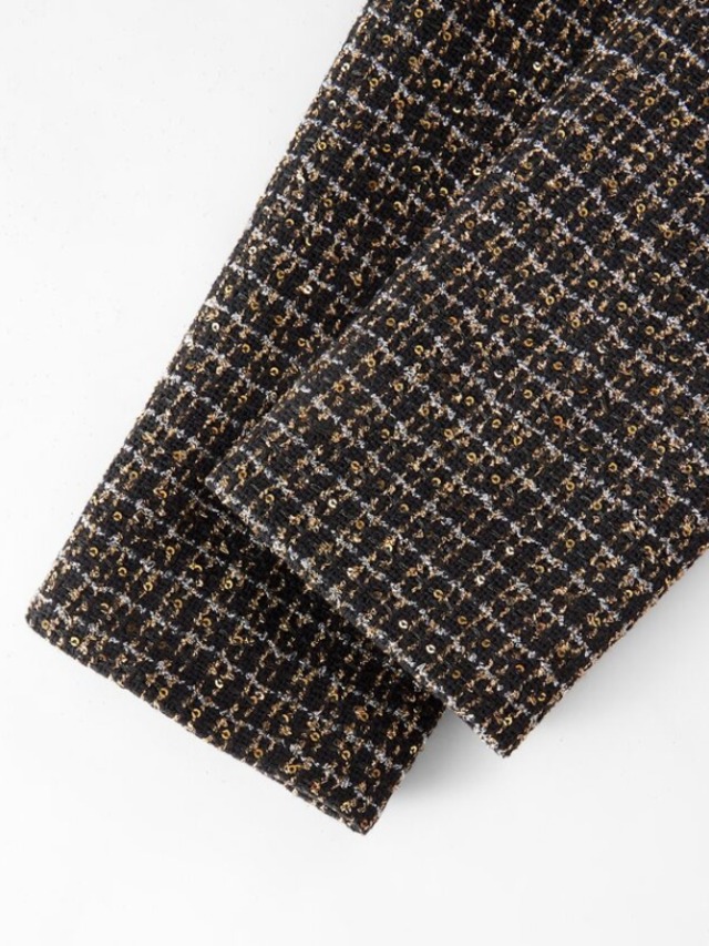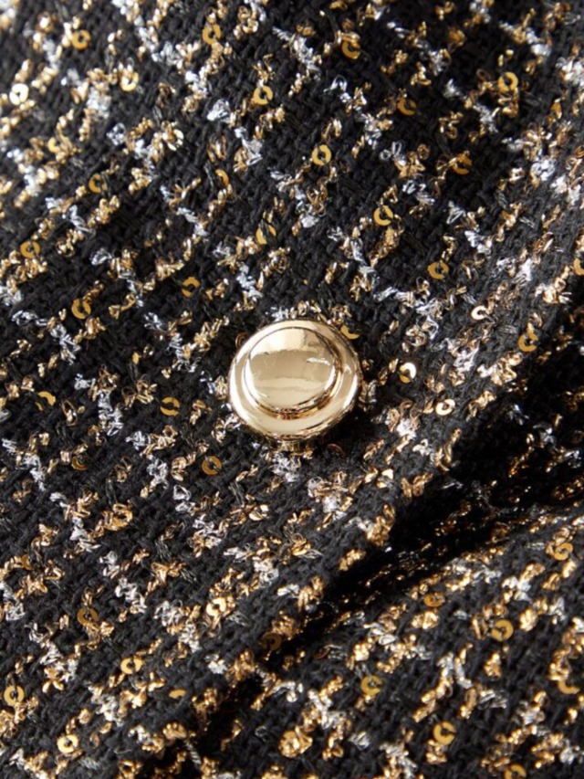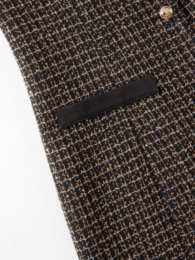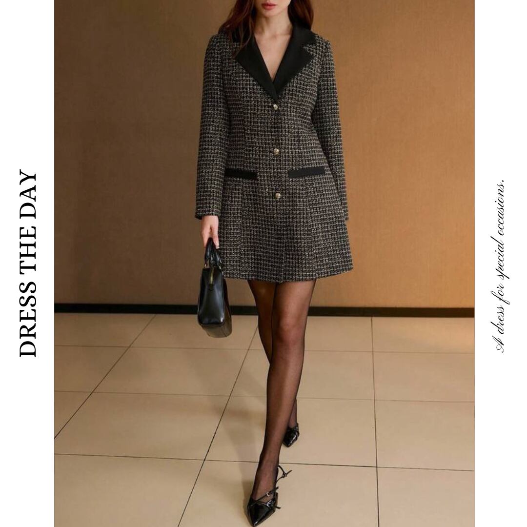 【商品管理番号】 W0112 【商品説明】 ツイード調の素材感が大人っぽい印象をつくる上品なドレス。ゴールド調ボタンがアクセントになり、フロントのラインをすっきり見せます。ゆるやかなAラインがスタイルをきれいに整え、デイリーにも軽いお出かけにも使いやすい一枚です。 【カラー】 ブラック 【サイズ】 【M】肩幅:37cm/胸囲:91cm/着丈:81cm/袖丈:58.5cm/ウエスト:75cm/カフ:24cm 【L】肩幅:38cm/胸囲:95cm/着丈:82cm/袖丈:59.5cm/ウエスト:79cm/カフ:25cm 【XL】肩幅:39cm/胸囲:99cm/着丈:83cm/袖丈:60.5cm/ウエスト:83cm/カフ:26cm 【2XL】肩幅:40cm/胸囲:105cm/着丈:84.5cm/袖丈:61.5cm/ウエスト:89cm/カフ:27.5cm ※サイズは測り方により2-5㎝の誤差が生じる場合がございます。 【素材】 ポリエステル100% 【ご利用可能/お支払方法】 ・クレジットカード決済 (VISA/Master/JCB/AMERICAN EXPRESS) ・キャリア決済 (docomo/au/SoftBank/Y!mobile/UQmobile) ・あと払い決済(PAYID) ▼注意事項 SHOPABOUTをご確認いただいた上でご購入ください。
